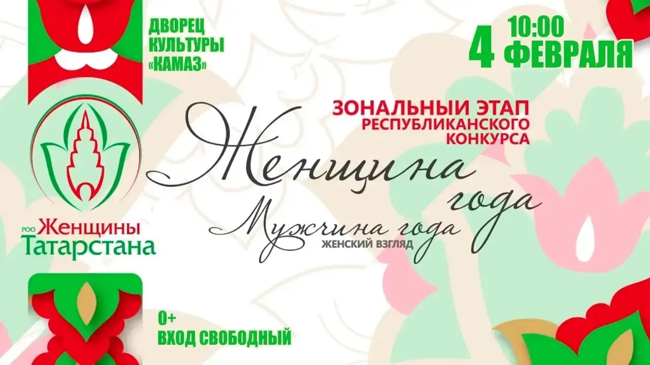 4 февраля во Дворце культуры «КАМАЗ» состоится зональный этап республиканского конкурса, в котором примет участие 31 человек. Вот уже несколько лет подряд самые активные и творческие представительницы прекрасного пола и самые успешные мужчины города принимают участие в республиканском конкурсе «Женщина года. Мужчина года: женский взгляд», который ежегодно проводится по инициативе региональной общественной организации «Женщины Татарстана» при поддержке Раиса Республики Татарстан Рустама Минниханова.