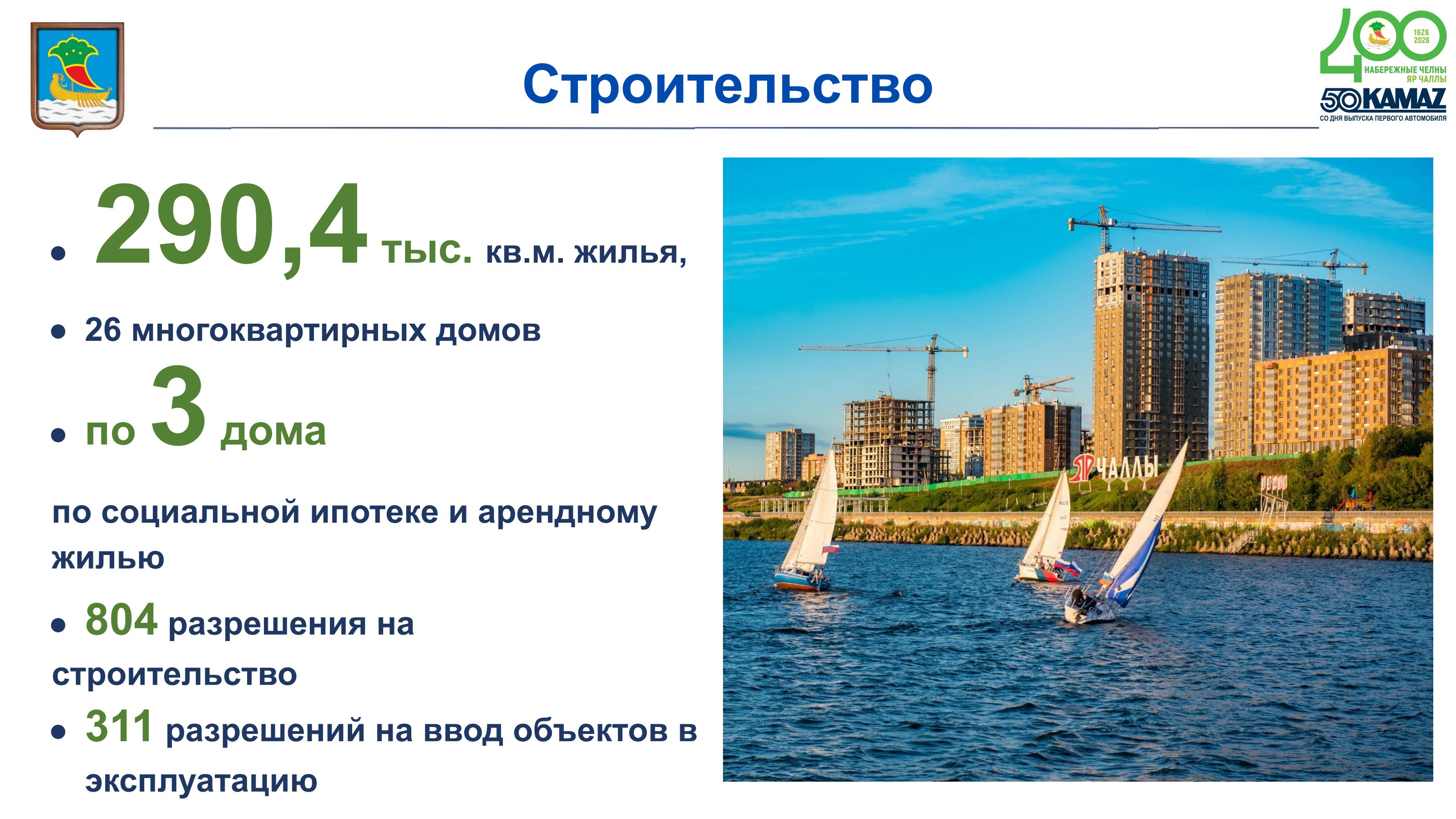 По итогам 2025 года в Набережных Челнах введено в эксплуатацию 290,4 тыс. кв. метров жилья. Было построено 26 многоквартирных домов, из которых три объекта возведены по программе «Арендное жилье» и три — по программе социальной ипотеки. Активность отрасли подтверждается и статистикой документооборота: за год выдано 804 разрешения на строительство и 311 разрешений на ввод объектов в эксплуатацию. Об этом на V заседании Городского Совета рассказал руководитель Исполнительного комитета Фарид Салахов.