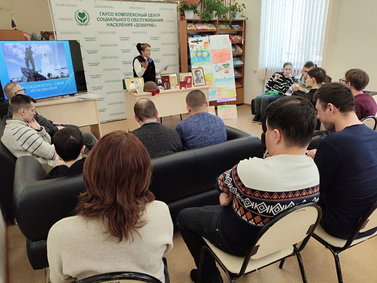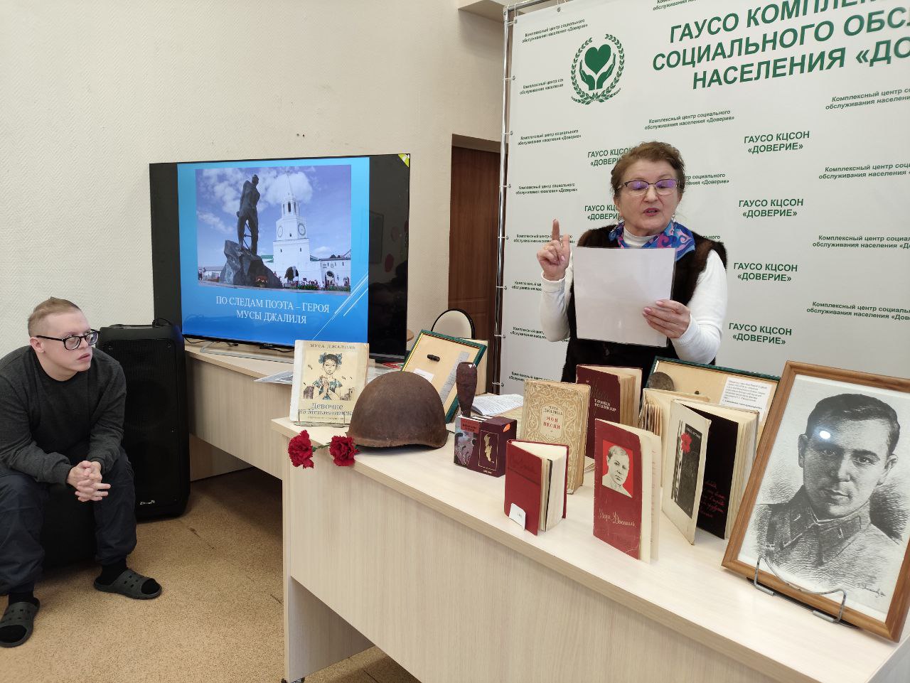 В отделении дневного пребывания Набережночелнинского комплексного центра социального обслуживания населения «Доверие» состоялось познавательное мероприятие, объединившее темы патриотизма, истории и социальной реабилитации. Его посвятили грядущему 120-летию со дня рождения великого поэта-героя Мусы Джалиля.