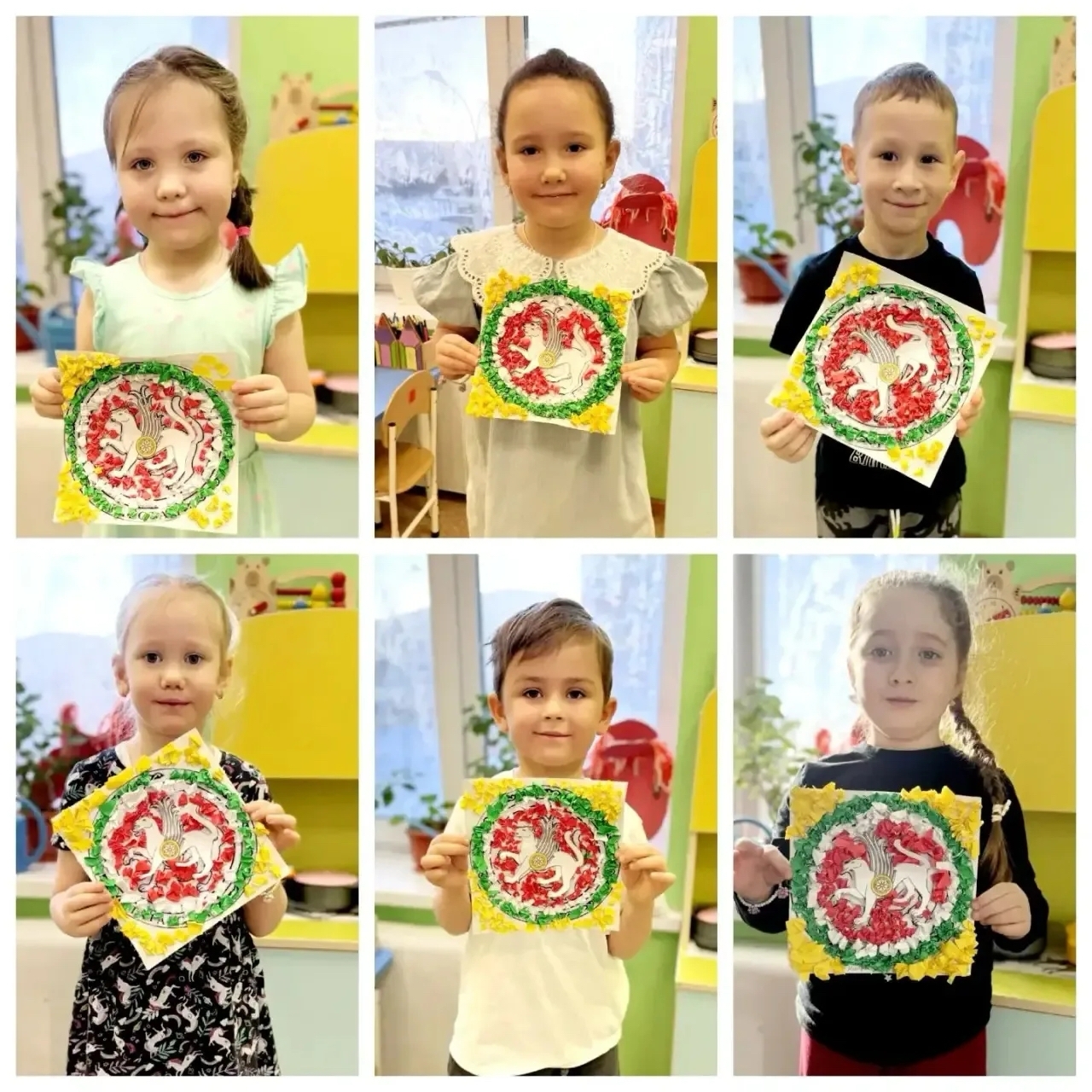 Воспитанники детского сада №122 «АБВГДейка» изготовили аппликации, посвященные Дню Государственного герба Республики Татарстан. В процессе работы дети не только развивали свои художественные навыки, но и узнавали о значении герба Татарстана, его истории и культуре.