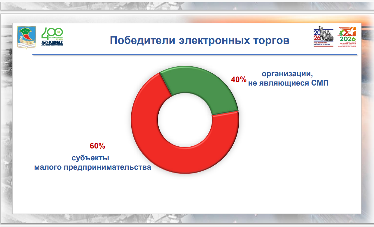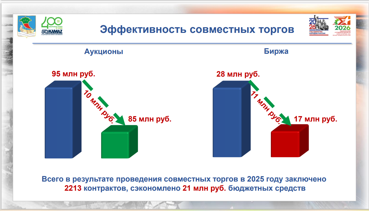 Большую часть заказов, около 60% забрали субъекты малого предпринимательства. В 2025 году проведено 63 совместных аукционов, конкурсов, запросов котировок, по итогам которых заключено 2 213 контрактов. Экономия бюджетных средств составила 21 млн рублей.