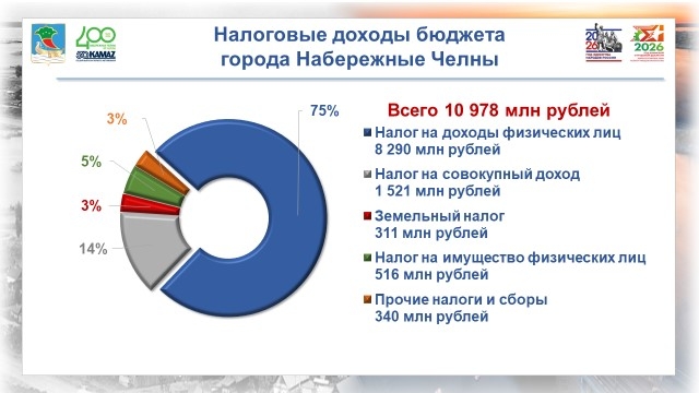 Главный вклад в пополнение бюджета внёс налог на доходы физических лиц (НДФЛ): его доля в налоговых доходах достигла 75 %; объём поступлений – 8 млрд 290 млн рублей (на 1 млрд 191 млн рублей больше, чем в 2024 году); темп роста составил 116,8 % при плановом показателе 109,8 %. Прирост обеспечен двумя факторами: повышение зарплат на предприятиях города – в среднем на 8 % (относительно уровня 2024 года); выплаты дивидендов – на сумму 1 млрд 295 млн рублей.