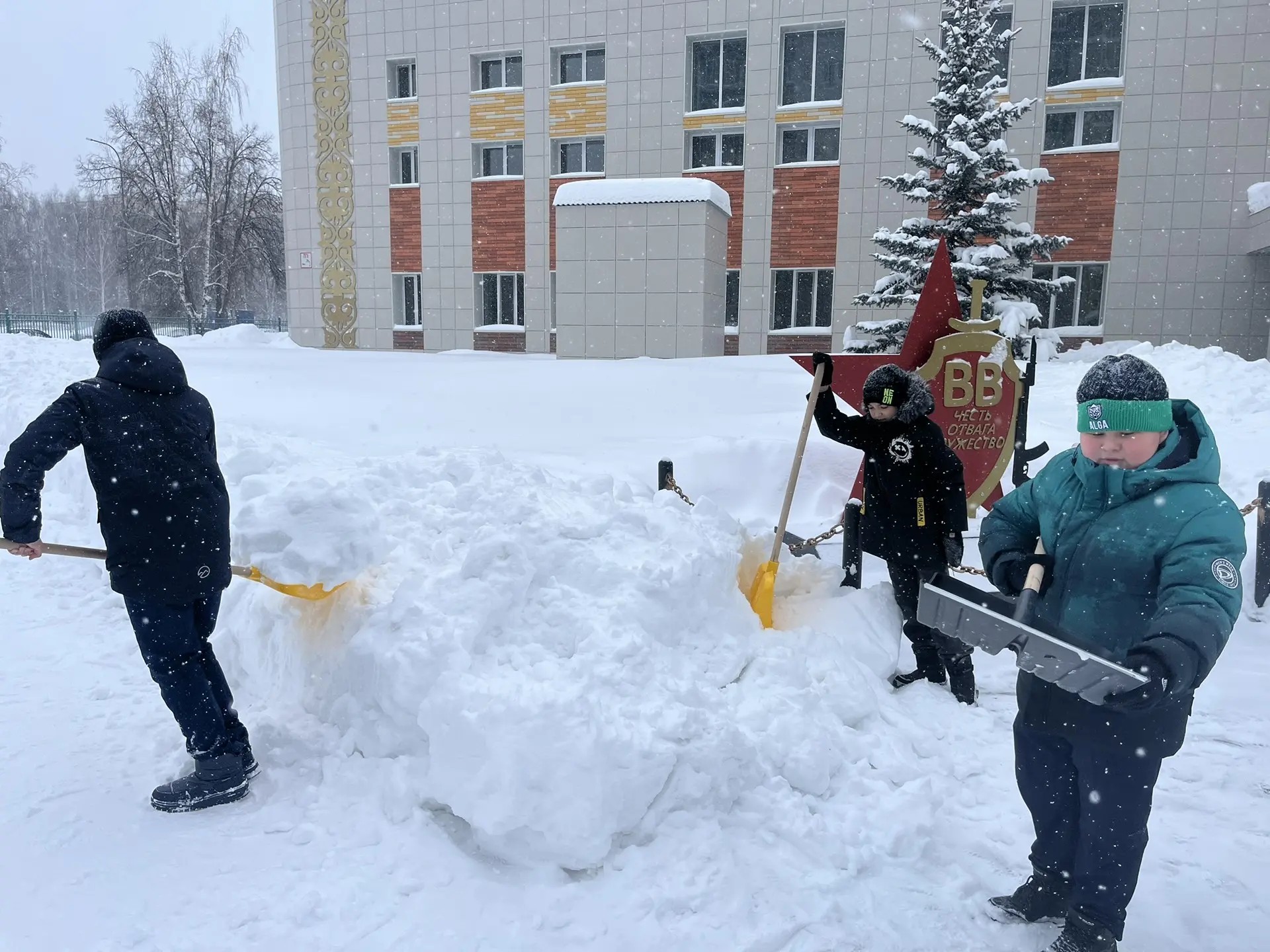 Ученики лицея-интерната №84 им. Г. Акыша убрали от снега территорию своего учреждения и прилегающую к ней территорию.