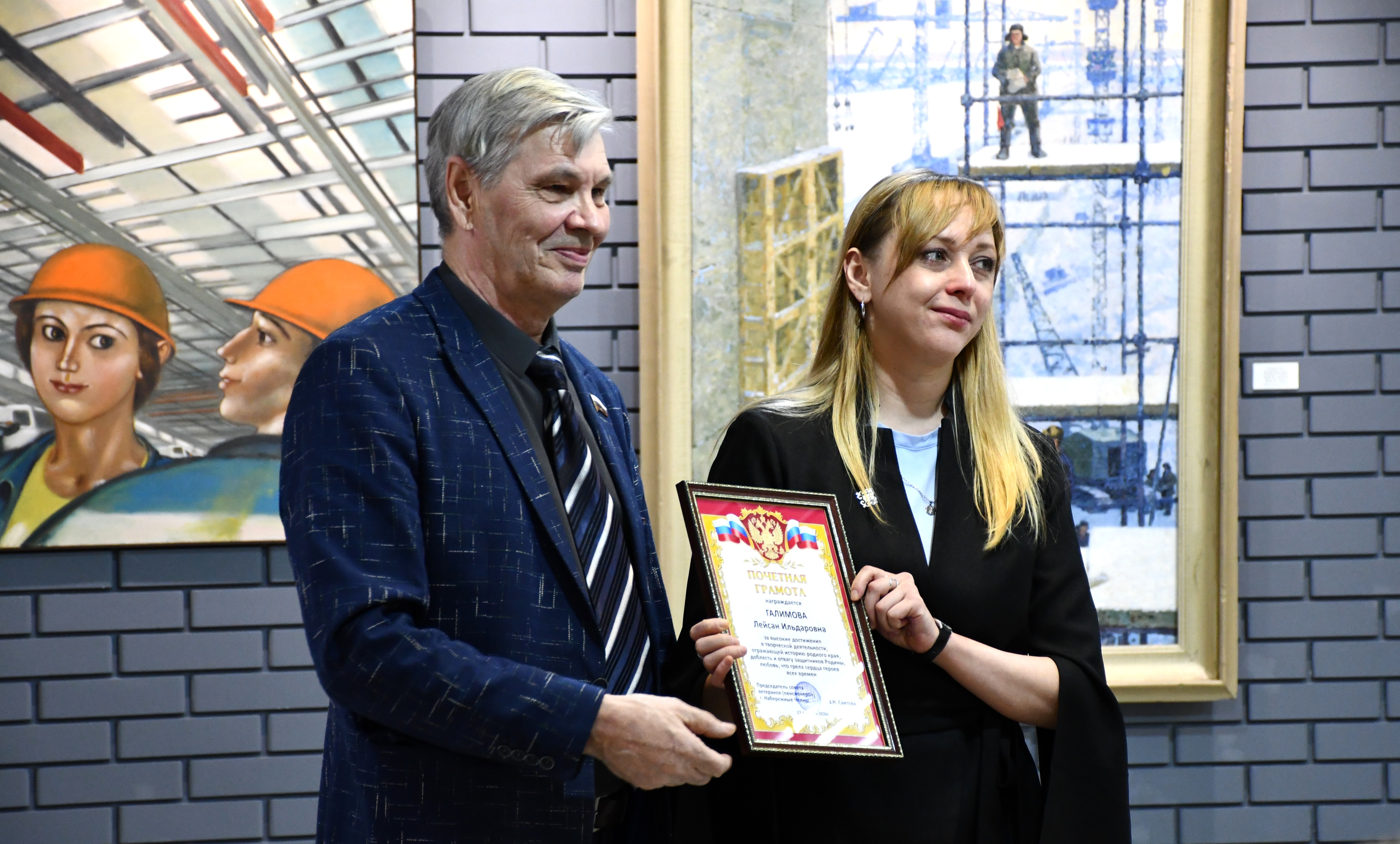 В Набережночелнинской картинной галерее открылась персональная выставка члена Союза художников Республики Татарстан Лейсан Галимовой «Доблесть и любовь». В год, объявленный в Татарстане Годом воинской и трудовой доблести, работы художника соединяют эпохи: от храбрости воинов Волжской Булгарии и солдат Великой Отечественной до самоотверженности бойцов специальной военной операции.