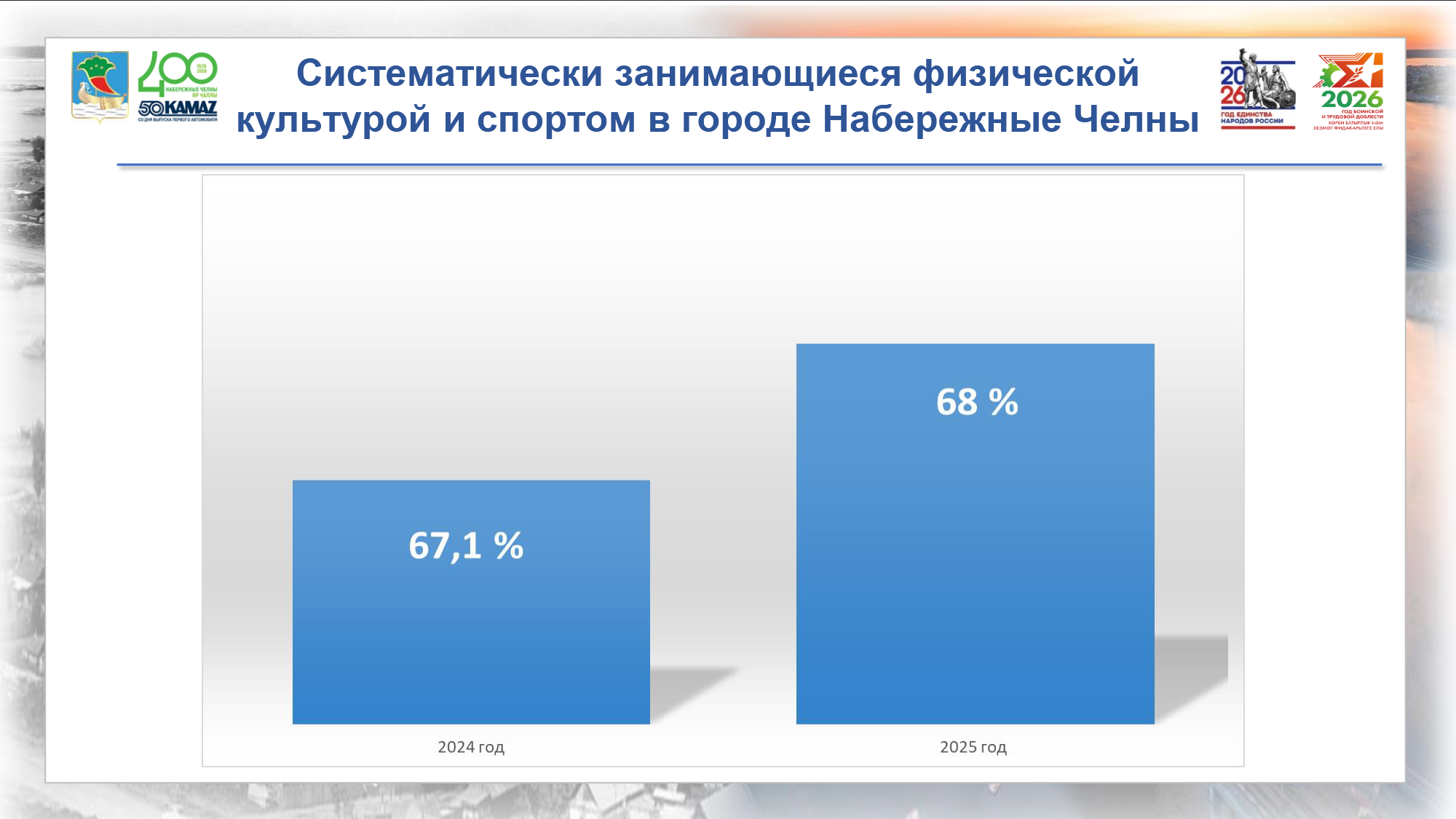 Систематически физической культурой занимаются более 348 тыс. горожан, что составляет 68% населения. Наиболее популярными дисциплинами являются плавание, футбол, баскетбол, волейбол, шахматы, легкая атлетика, хоккей, лыжные гонки и единоборства. Также в городе функционируют 23 центра тестирования комплекса ГТО. В 2025 году в выполнении нормативов участвовали более 21 тыс. человек, включая учащихся образовательных учреждений и сотрудников предприятий.