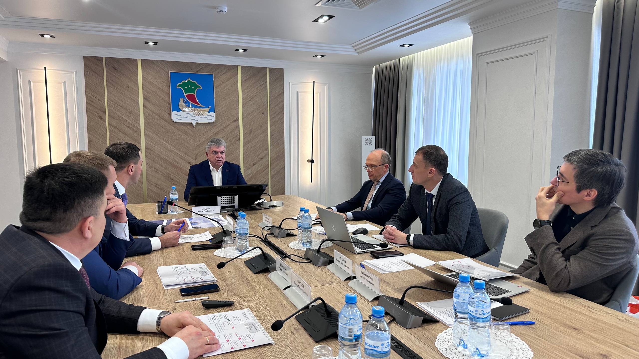 В Исполнительном комитете города состоялась рабочая встреча с участием мэра Наиля Магдеева, руководителя Исполкома Фарида Салахова и генерального директора ПАО «Таттелеком» Айрата Нурутдинова.