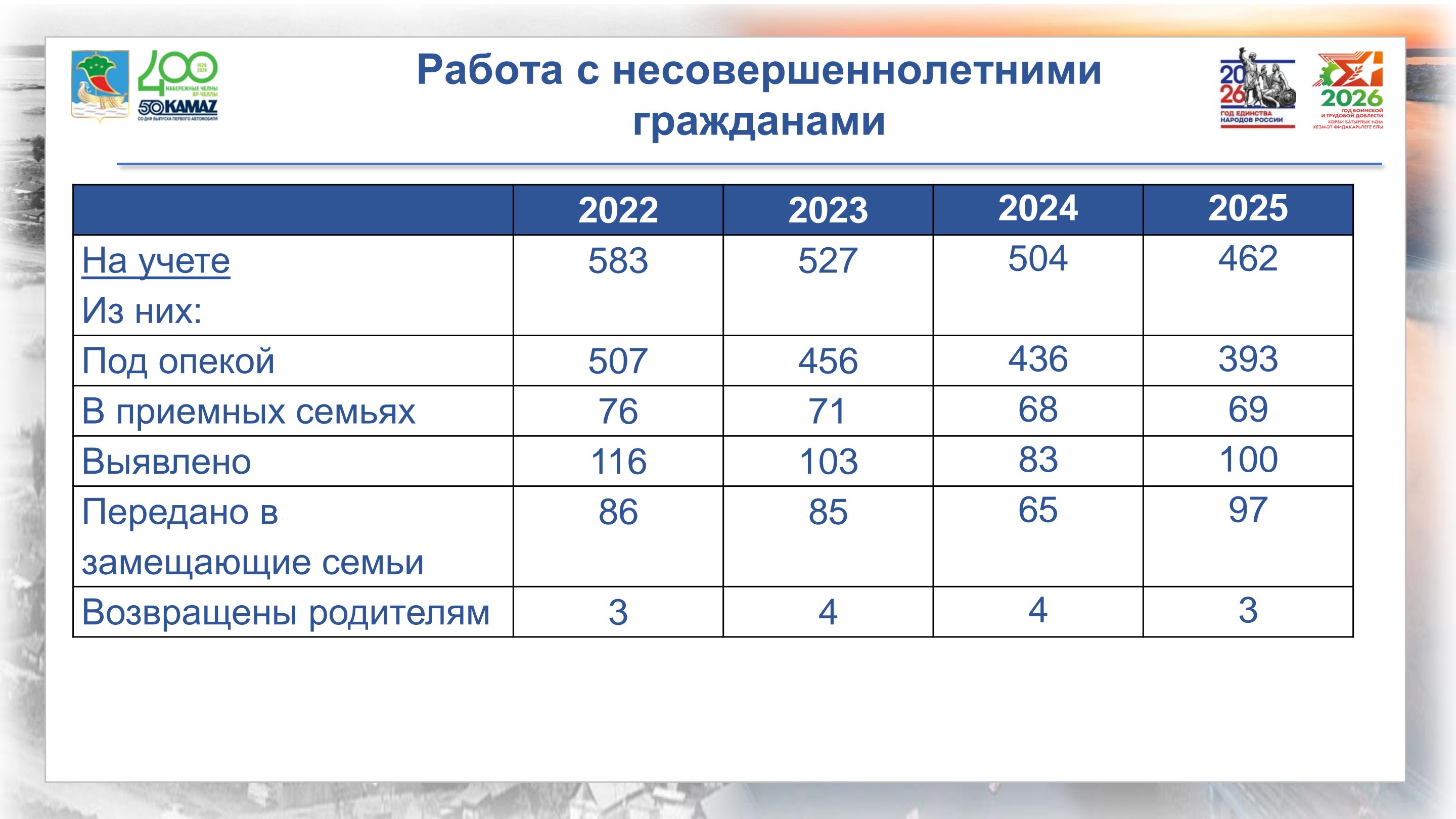 В Набережных Челнах насчитывается 462 ребенка-сироты и детей, оставшихся без попечения родителей. Это данные по итогам 2025 года. Специалисты отдела опеки отмечают положительную динамику: за последние пять лет их число неуклонно снижается. Об этом рассказал начальник отдела опеки и попечительства Иван Калинин.