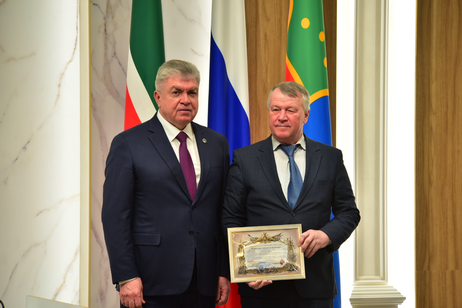 Сегодня в ходе традиционного делового понедельника мэр города Наиль Магдеев вручил награды и благодарности пяти челнинцам за поддержку СВО.