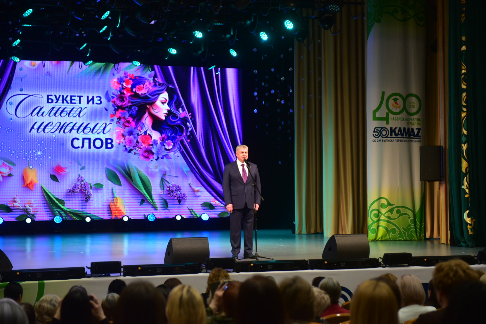 Во Дворце культуры «Энергетик» в Набережных Челнах состоялся праздничный концерт «Букет из самых нежных слов», приуроченный к Международному женскому дню. Почётными гостями торжественного мероприятия стали родные участников специальной военной операции, ветераны труда, многодетные матери, врачи, педагоги, работники промышленных предприятий и представители общественных организаций. В торжестве также участвовала депутат Государственной Думы Российской Федерации Альфия Когогина.