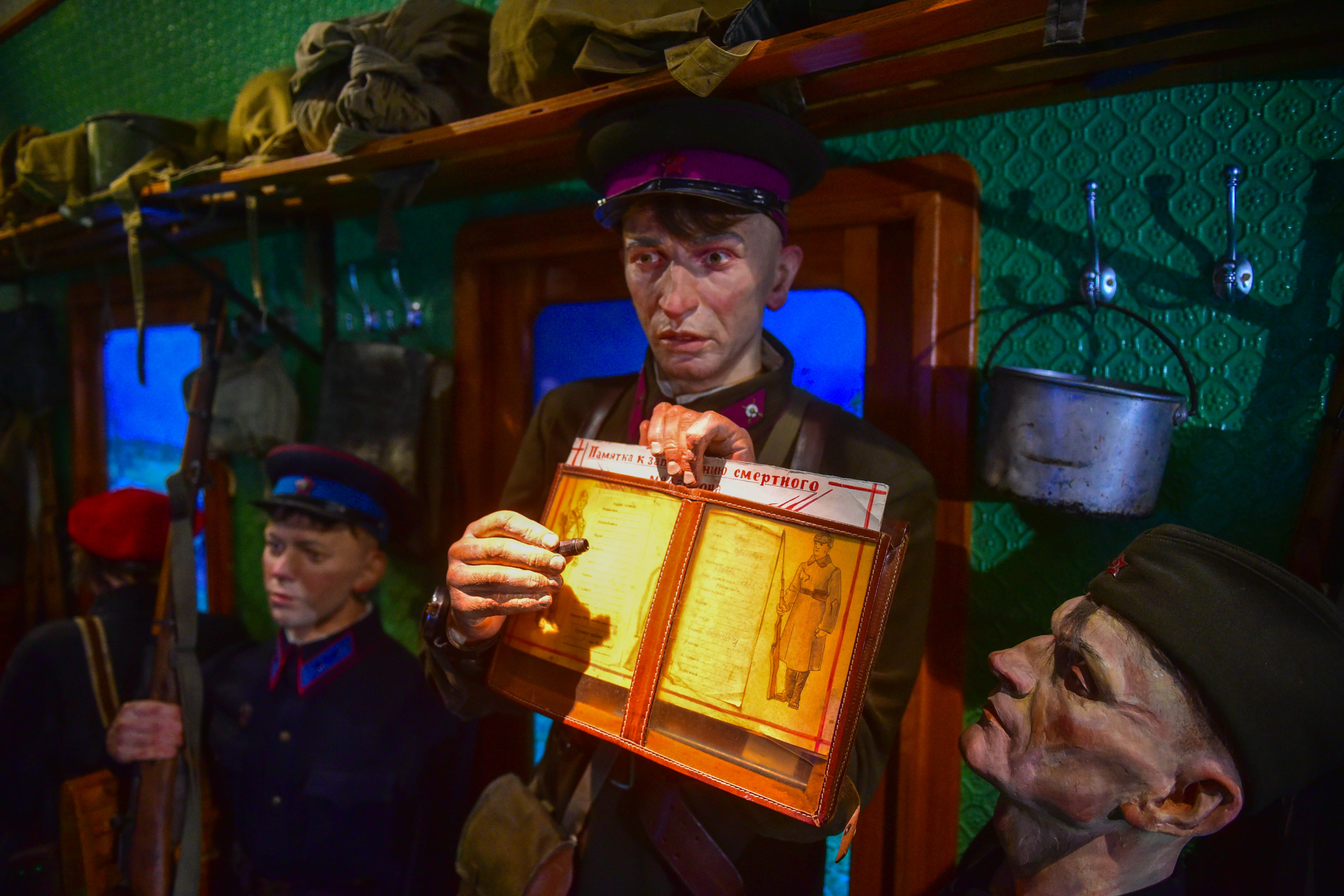 В экспозиции использованы: ростовые фигуры военных и гражданских лиц, объёмный звук, мультимедийные поверхности. Проект реализует Всероссийское общественное движение «Волонтёры Победы» при поддержке Министерства науки и высшего образования РФ и РЖД.