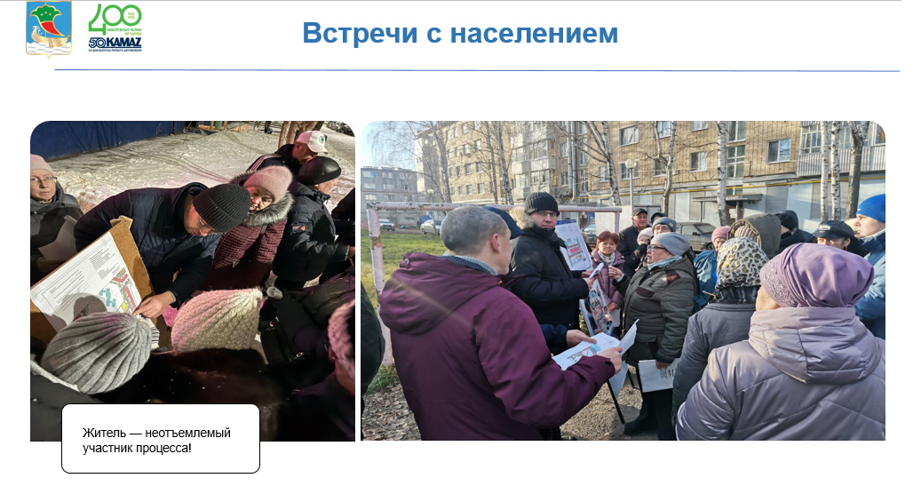 До запуска работ организуются обсуждения с жителями: на дворовых территориях депутаты, архитекторы, сотрудники администраций районов и управляющих компаний представляют схемы, отражают пожелания и фиксируют решения протоколами общих собраний. Все объекты сопровождают паспорта с согласованной схемой благоустройства, контроль осуществляют «Главтатдортранс» и «Главинвестстрой», активные жильцы максимально вовлечены через портал dvor.tatar, соцсети и горячую линию − замечания оперативно отрабатываются.