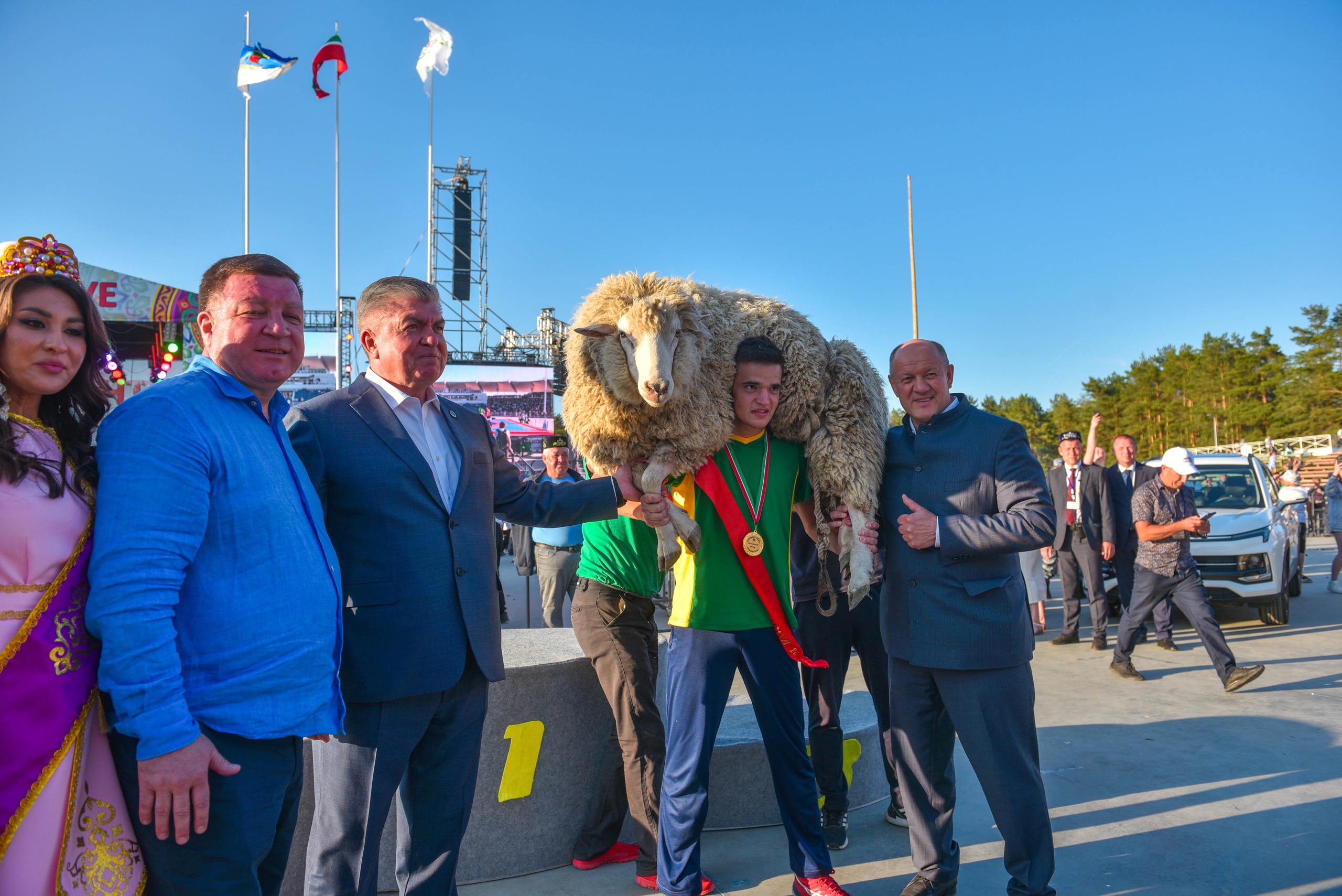 Сабантуеның абсолют батырына тәкә һәм спонсорлар акчасына алынган «Лада Веста» автомобиле тапшырыла.